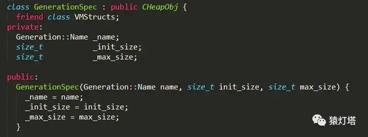 GenerationSpec实现,永久代通过PermanentGenerationSpec实现。每个生成器GenerationSpec实例保存当前分代的GC算法、内存的初始值和最大值。