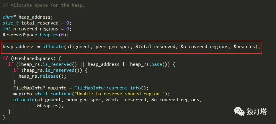 number_of_generations方法获取分代数量,如果使用ASConcurrentMarkSweepPolicy,默认分代数为2;align方法对齐生成器的初始值和最大值(为什么需要一直对齐,我觉得前面初始化GC策略的时候已经对齐很多次了)3、通过allocate为堆申请空间;