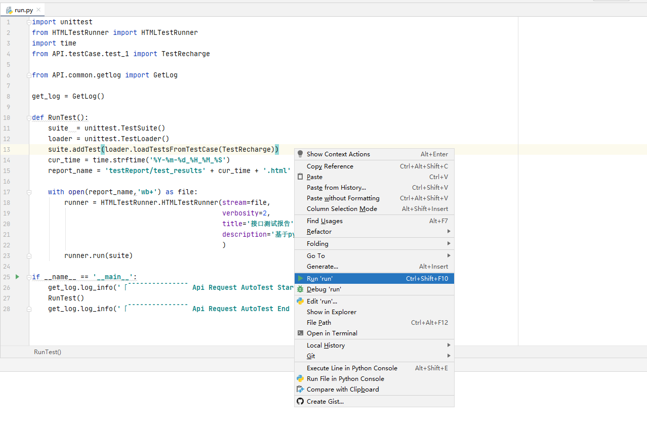 右键任意位置,点击运行,没报错,那就是极好的,如果有报错,就去找报错的原因,一般都是第三方库没有安装到位,那就得自行去pip install了。