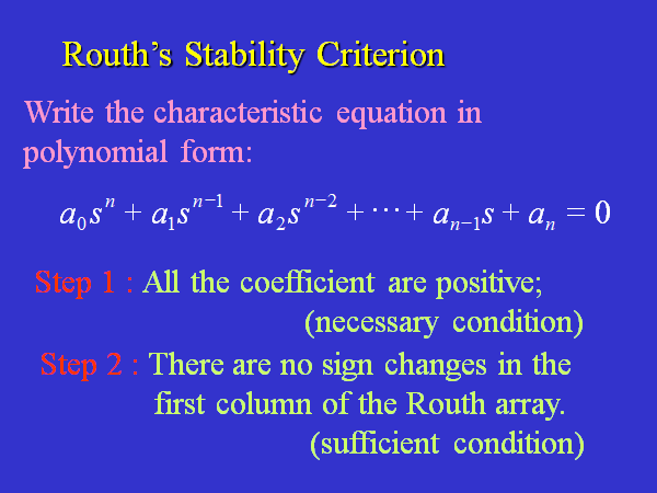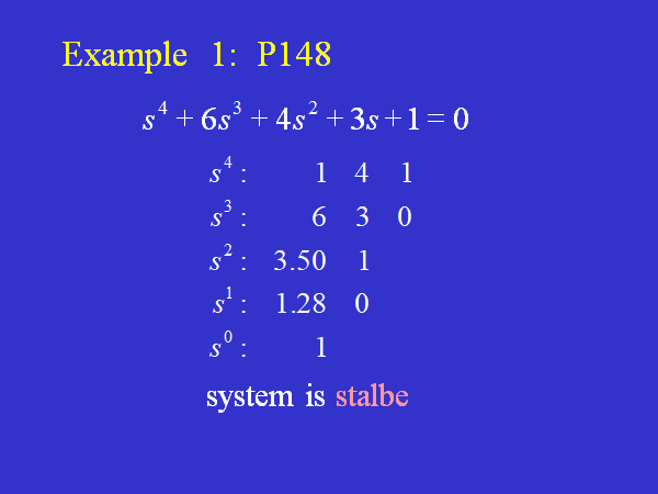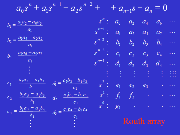 【小技巧】 在劳斯表第一列的最后一个元素,在不约分的情况下,等于方程的常数项,考试的时候可以验算自己有没有算错劳斯表。