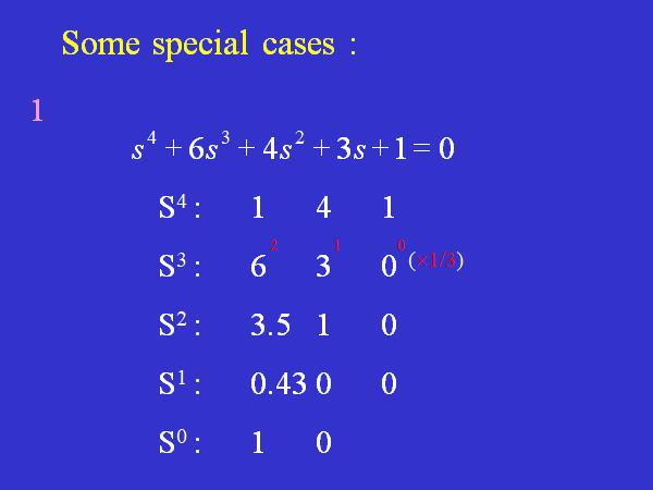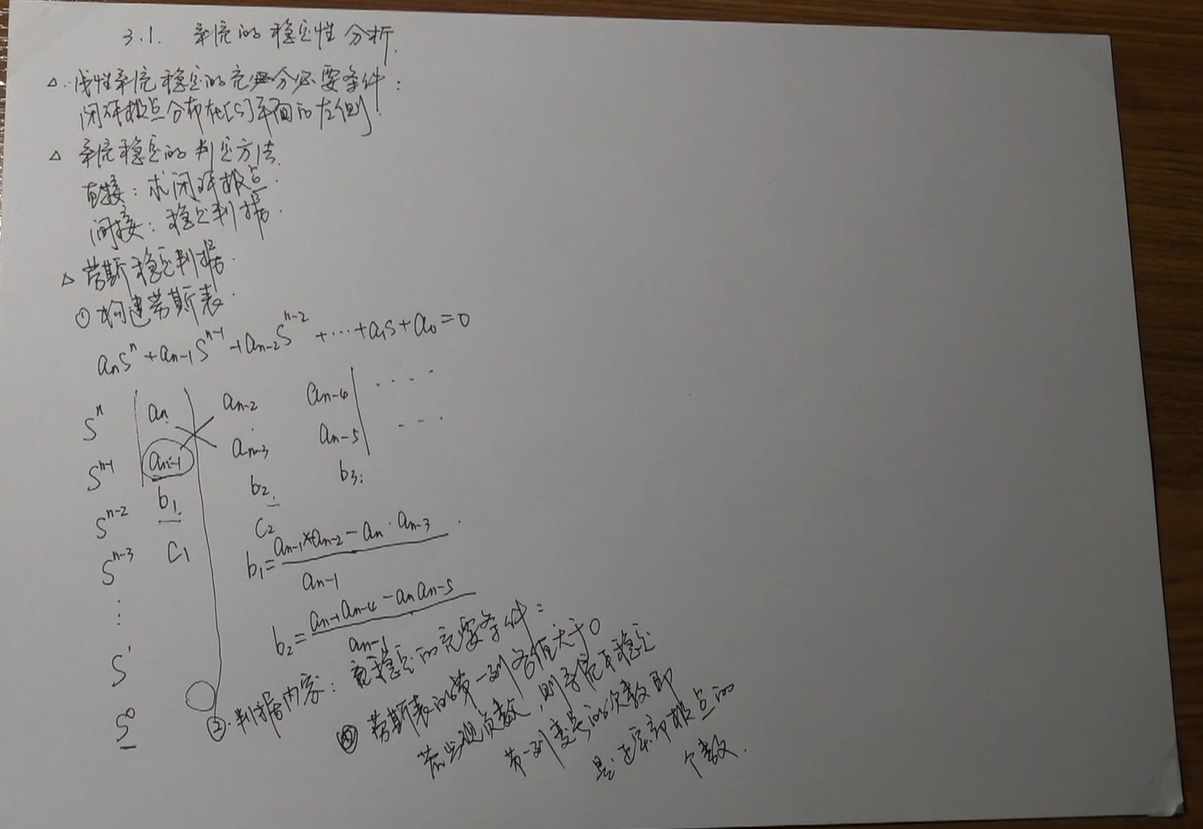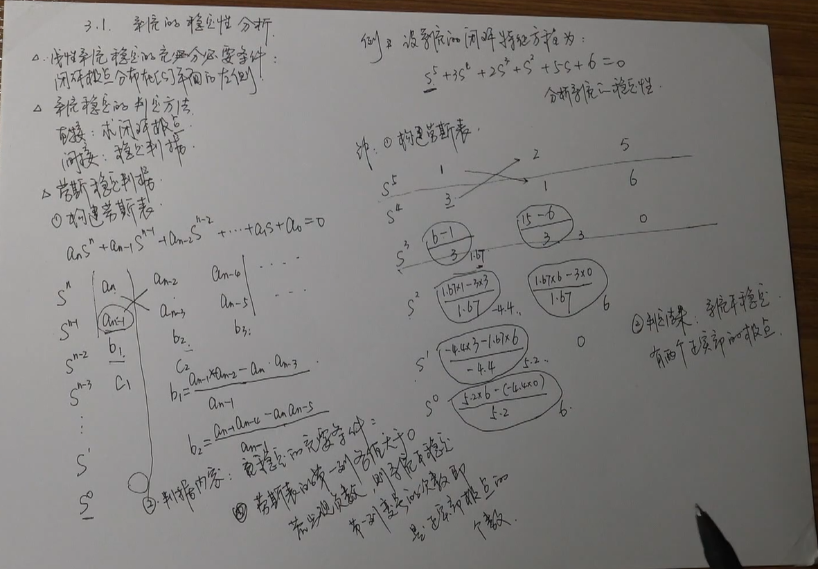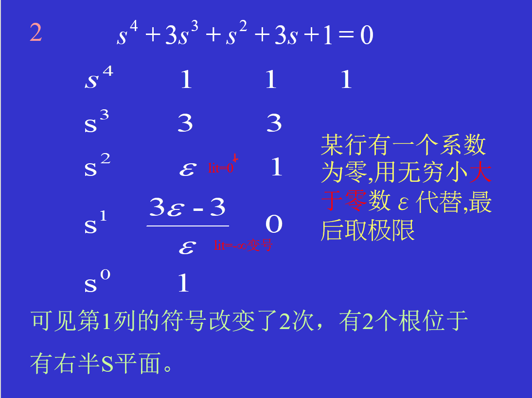 ②第一列出现0:用ε代替继续算劳斯表,最后取极限ε趋近于无穷小的整数(0.0001)