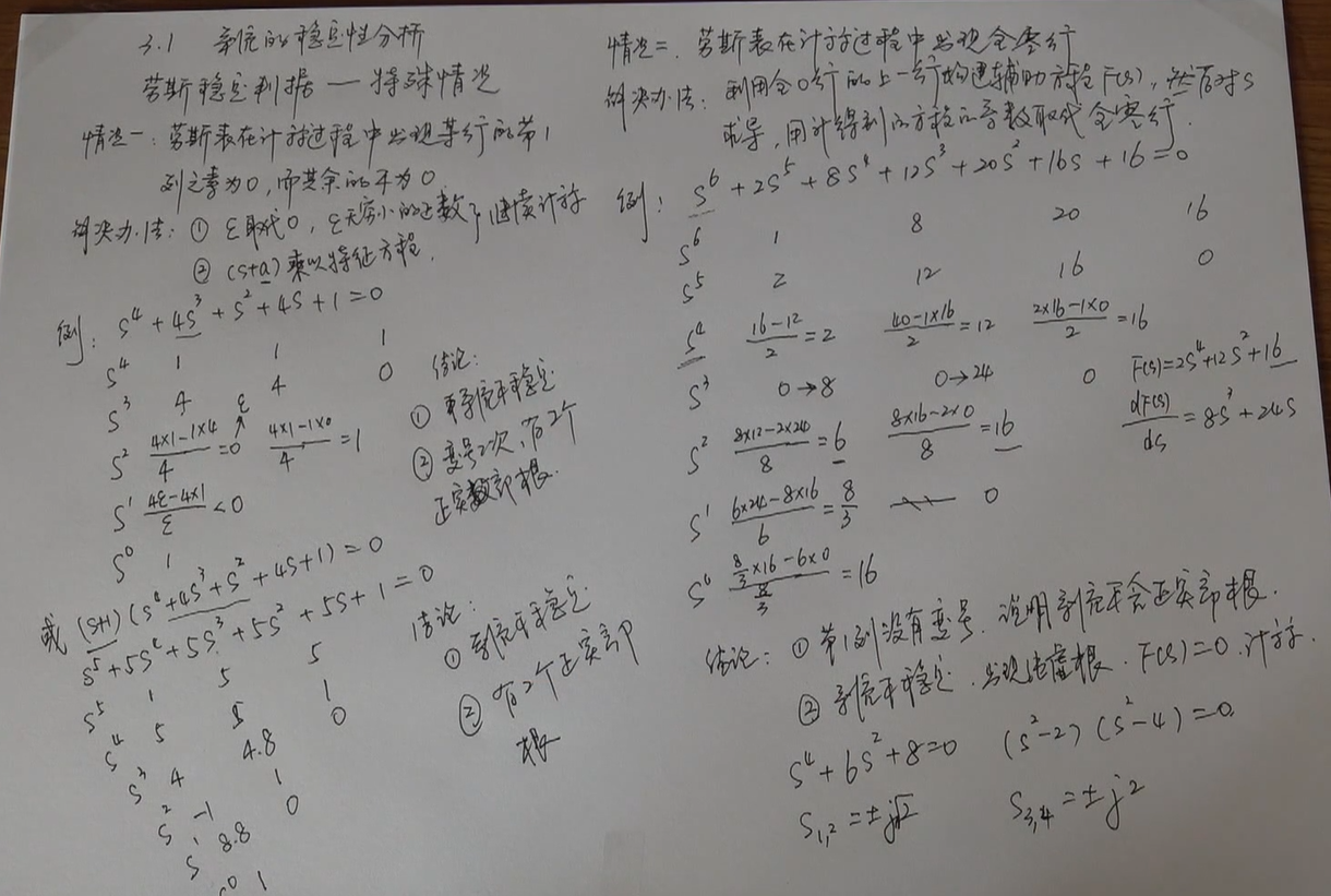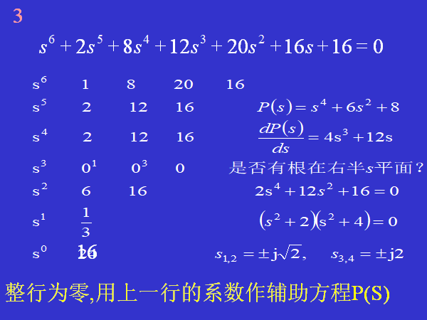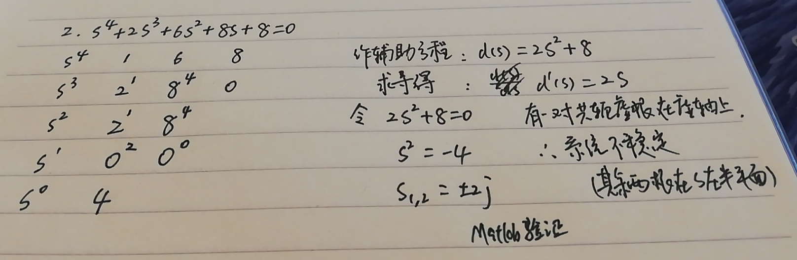 step3:无变号则解辅助方程,求出极点位置,由极点位置判断是否稳定(在虚轴老师说是不稳定)(技巧:辅助方程使用劳斯判据判断是否稳定,缺项就不稳定)