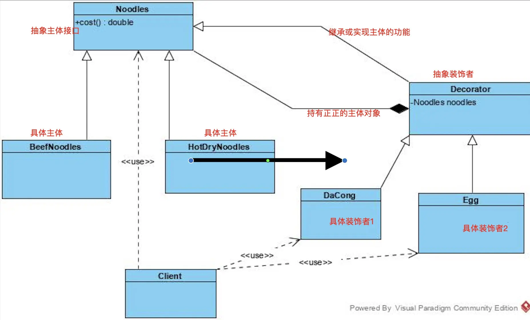 - 装饰者模式就像一个牙膏的生产过程,有主体和外包装,主体可以单独存在并成为一个产品,主体也可以加上外包装使之成为一个新的主体也是一个产品。