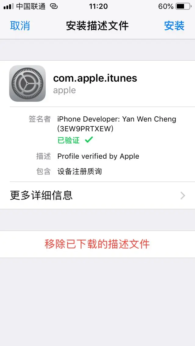 到手机描述文件管理处安装描述文件