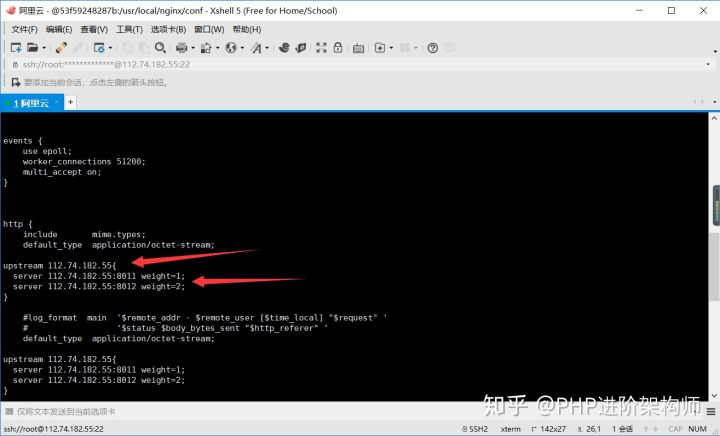 vi /usr/local/nginx/conf/nginx.conf 修改配置