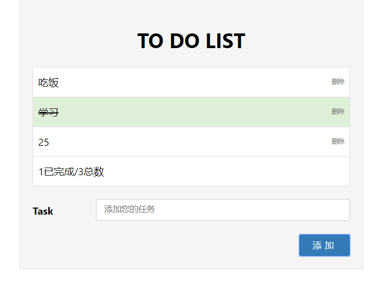 这是一个很常见的demo,功能就是简单的增删操作,但里面包含了React中诸多概念,事件处理、条件渲染、列表&Key等。最终效果图如下。