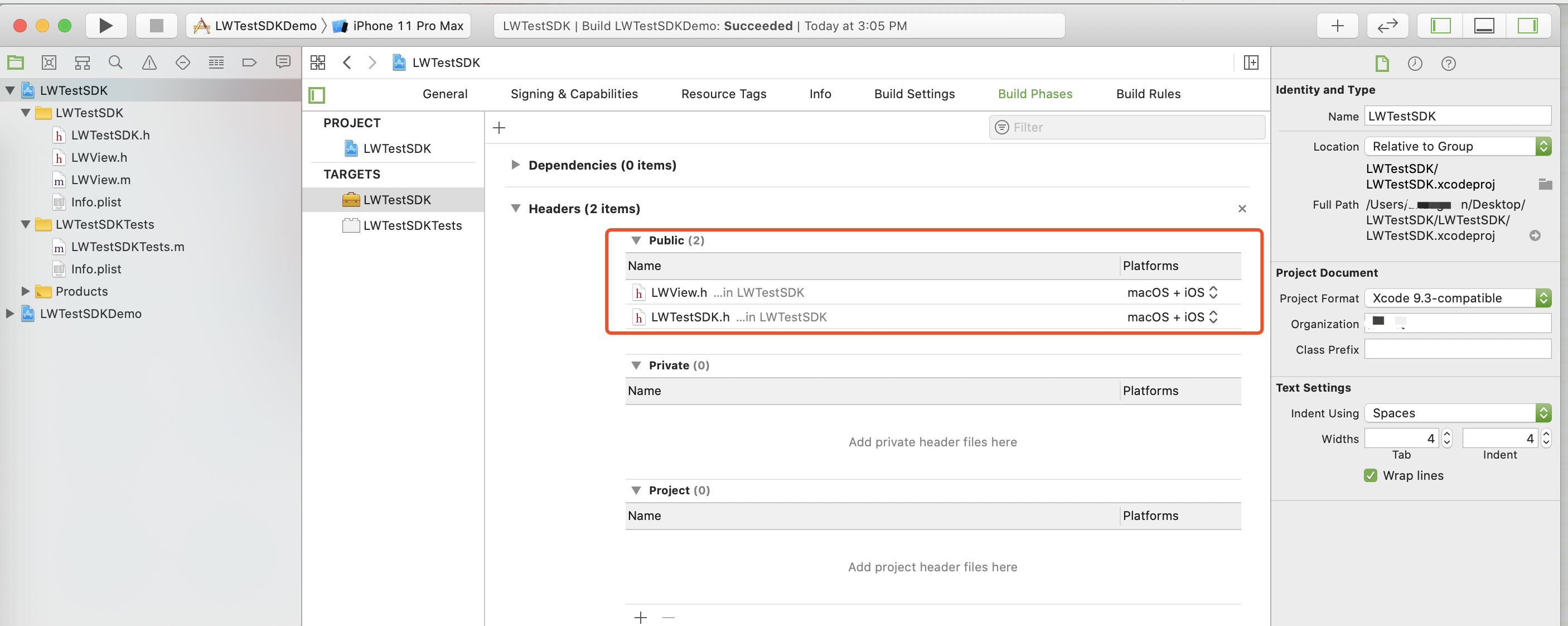 SDK的Framework工程已经创建完毕,修改其中的配置