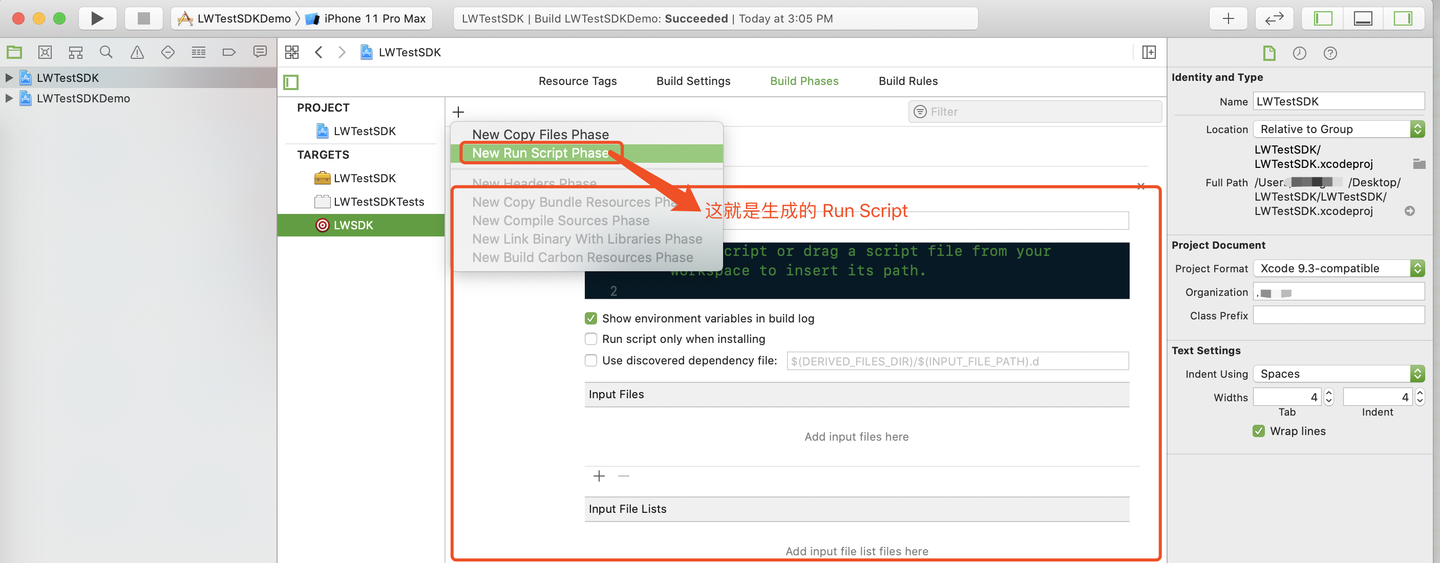 Build Phases,点击左上角的加号,选择New Run Script Phases生成Run Script