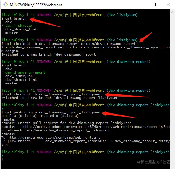 创建本地分支 本切换到该分支 git checkout -b 新分支名