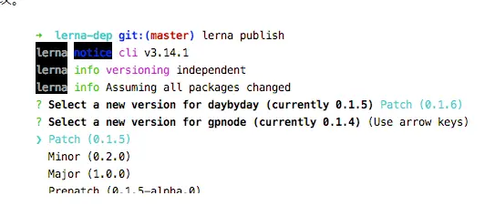 然后内部会运行git diff --name-only v版本号 ,搜集改动的包,就是下次要发布的。 并不是所有包都是同一个版全发布。