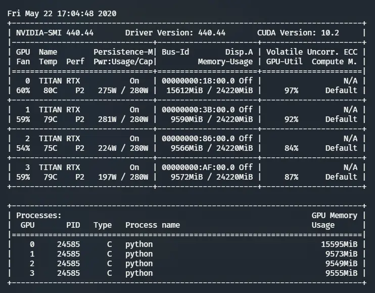 服务器为4卡TITAN RTX,进行实验时停止了其他高资源消耗的进程。