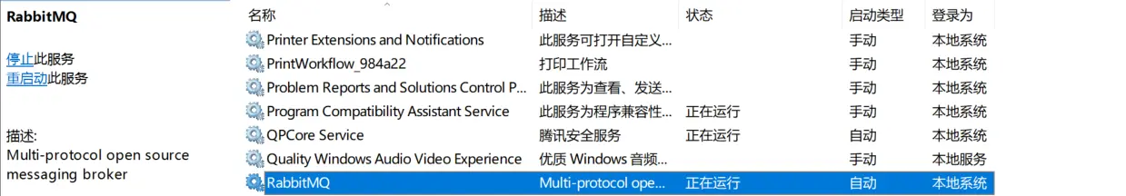 注意如果在任务管理器中没有此服务,那么则是因为安装的rabbitmqServer软件的安装路径下有中文或者是空格