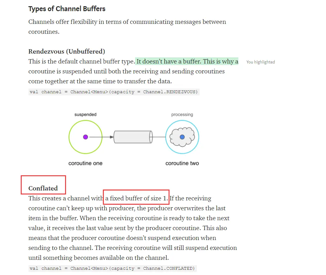 val channel =ConflatedBroadcastChannel<String>() //channel 的缓存大小为 1