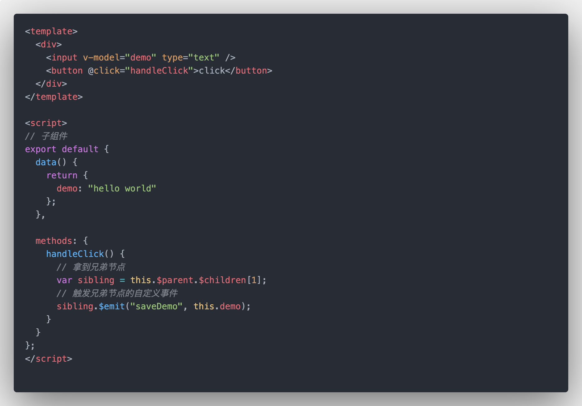 当明白 Vue 中自定义事件的本质后,想要实现兄弟节点间的通信,其实也就没有想象中的那么复杂了,可以花式的去实现。但本质上依然是,触发对应实例上的自定义事件。
