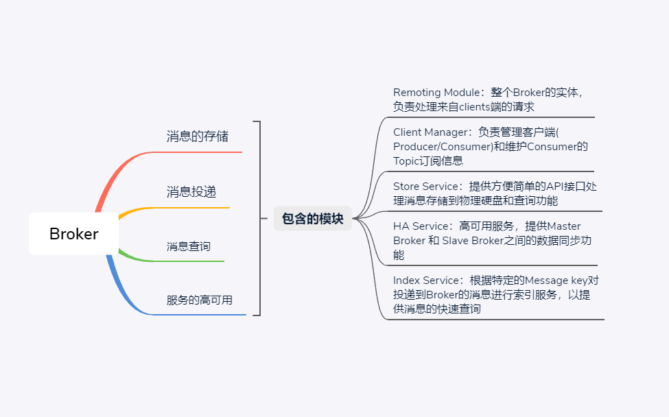 消息中转角色,负责存储消息、转发消息。Broker在RocketMQ系统中负责接收从生产者发送来的消息并存储、同时为消费者的拉取请求作准备。代理服务器也存储消息相关的元数据,包括消费者组、消费进度偏移和主题和队列消息等。