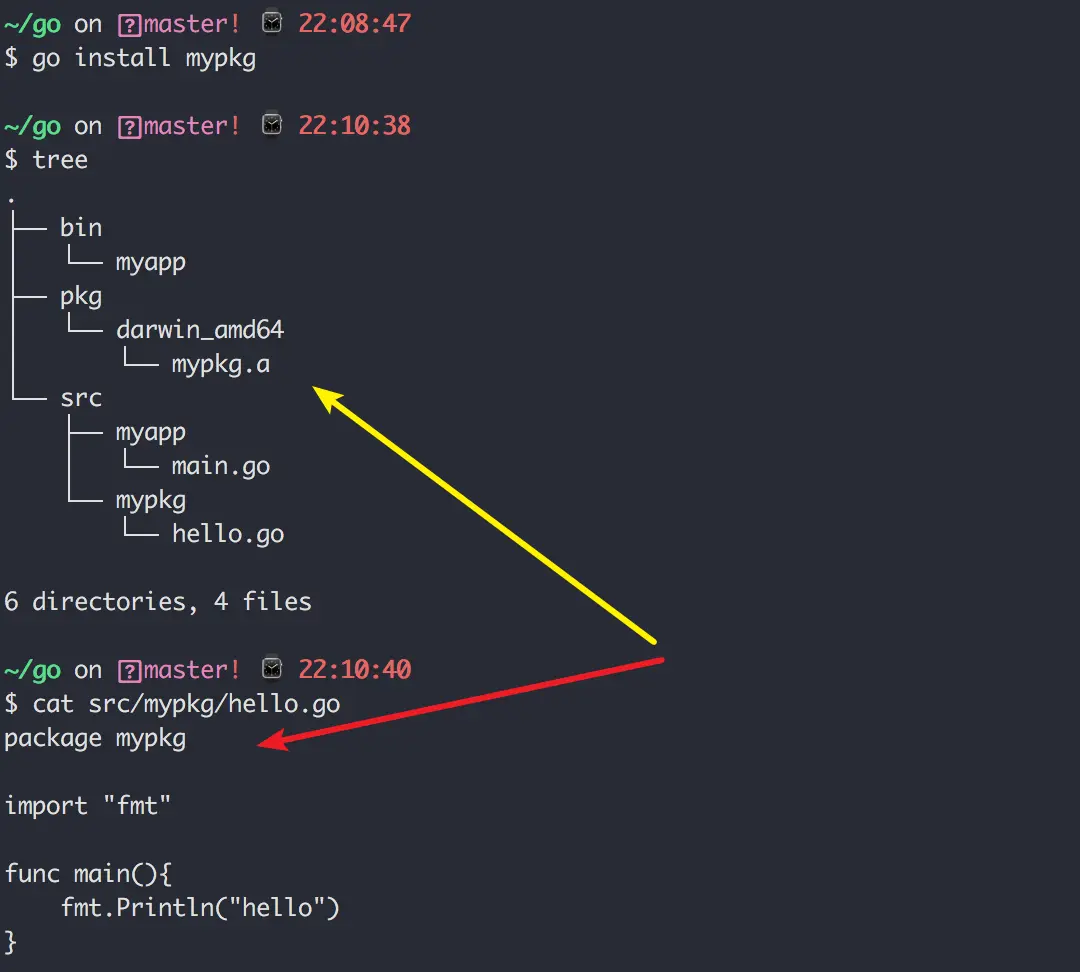 如果你安装的是一个库,则会生成 .a 文件到 $GOPATH/pkg 下对应的平台目录中(由 GOOS 和 GOARCH 组合而成),生成 .a 为后缀的文件。