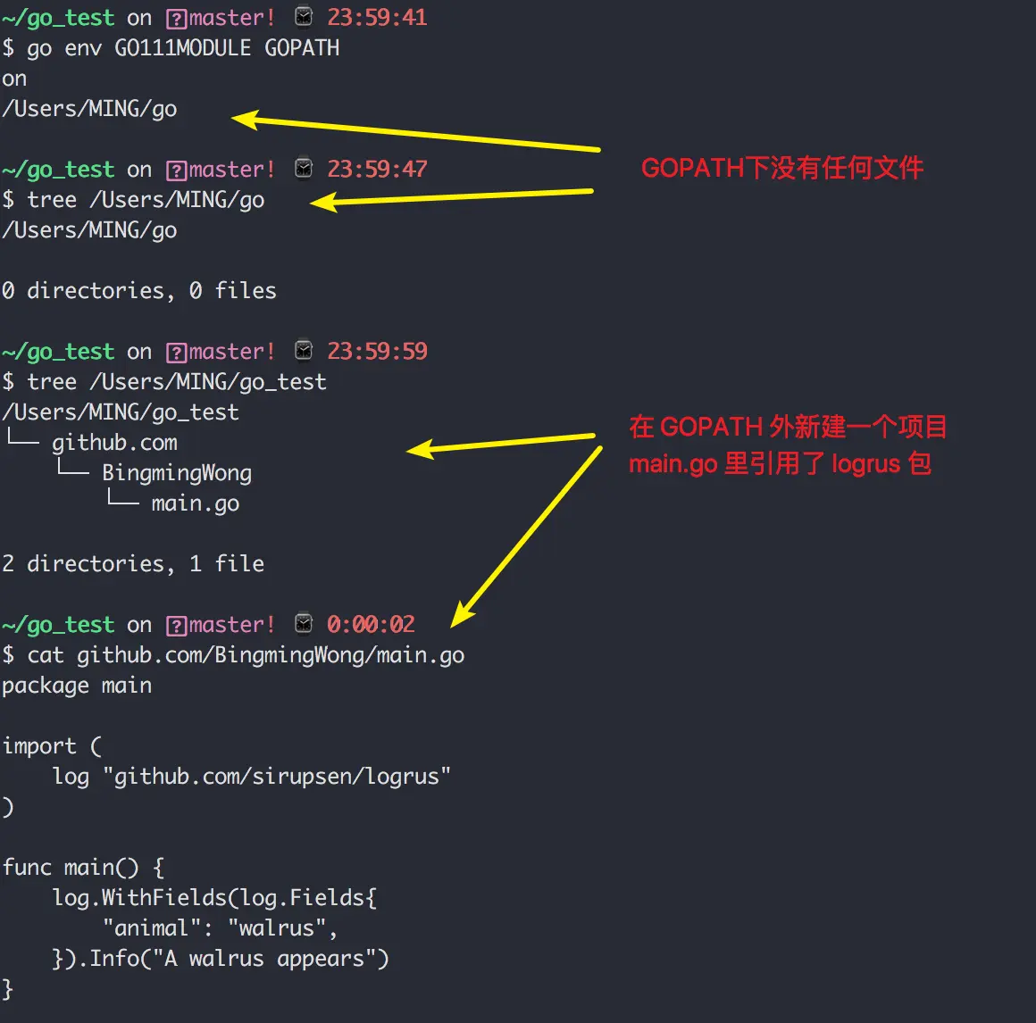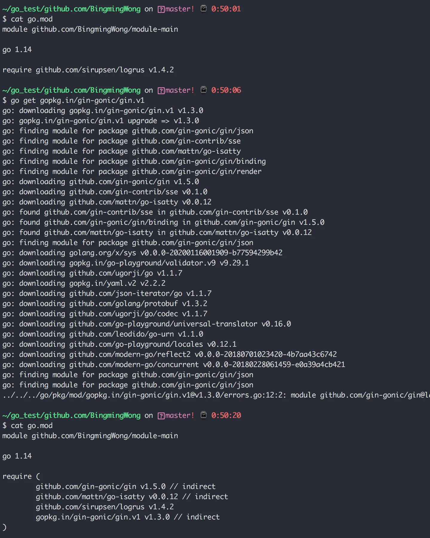 接下来,来演示一下 go modules 是如何来管理包依赖的。