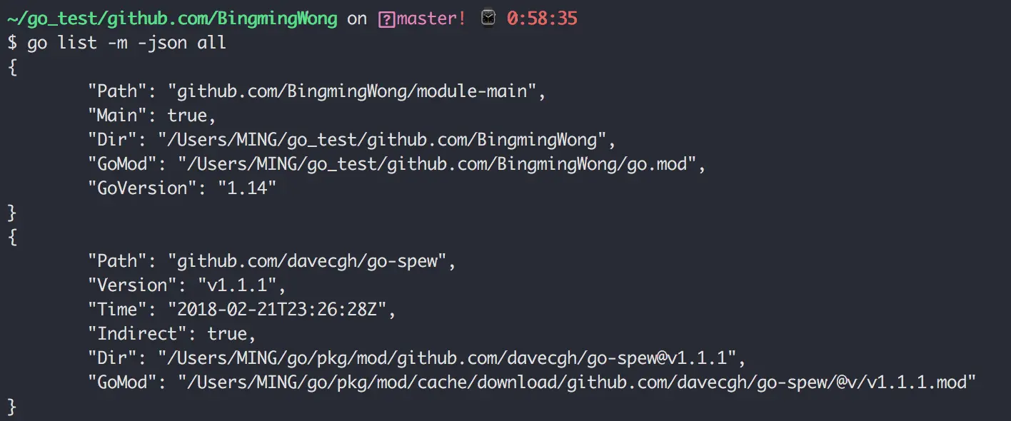 go list -m -json all:以 json 的方式打印依赖详情
