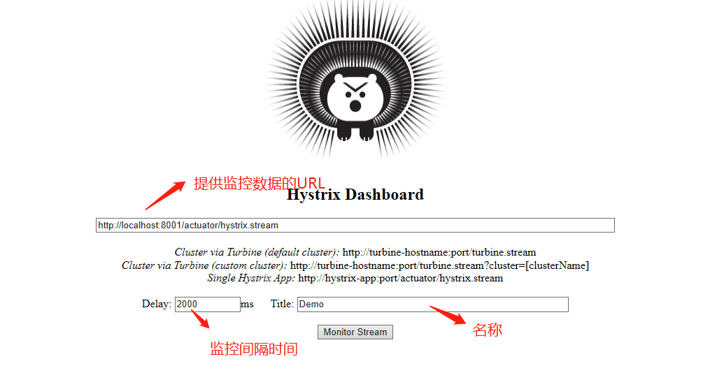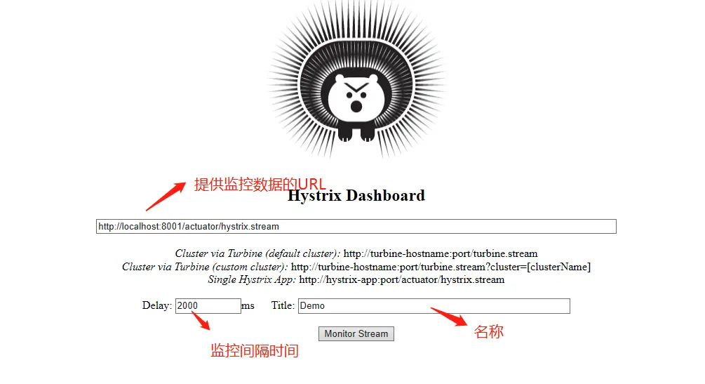 4、启动该项目,访问 http://localhost:9001/hystrix,页面内容如下: