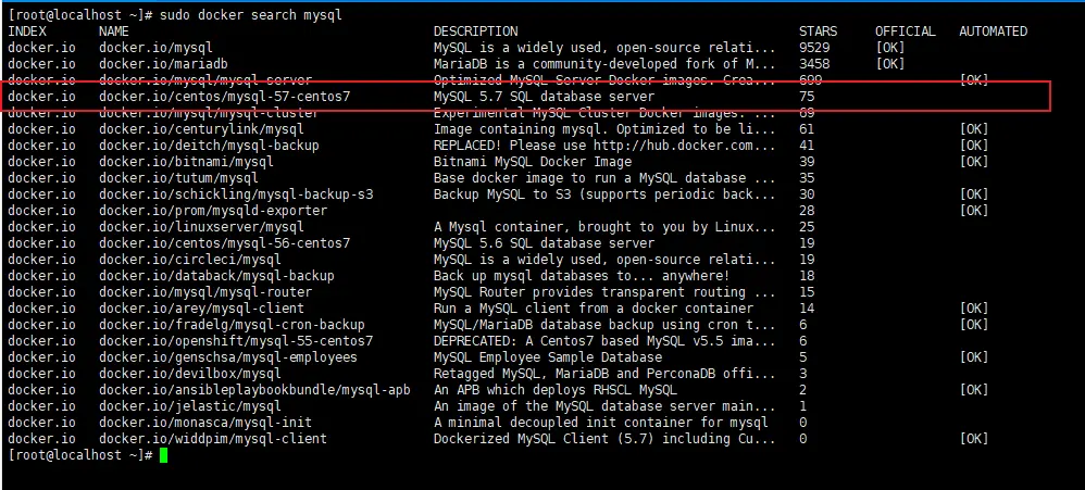 sudo docker search mysql