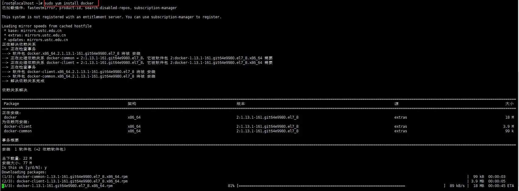 二、开始安装docker 现在我们开始安装docker了,运行命令