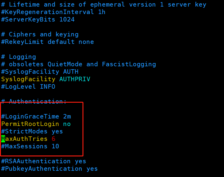 Linux 禁用root账户ssh登录 木雨小学生 2020-05-23 657 阅读1分钟 1、编辑配置文件 vim /etc/ssh/sshd_config 2、进行相应配置 修改PermitRootLogin后面的yes为no,并且去掉前面的注释符,同时可以限制失败次数 3、重启sshd服务 systemctl restart sshd.service