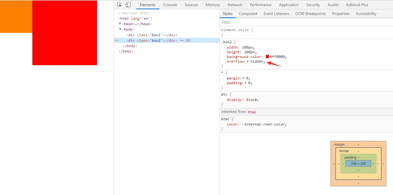 我们只需要让红色盒子产生一个新的BFC区域就可以了;