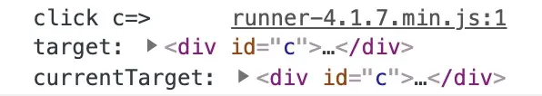 console.log("click c=>", "target:",e.target, "currentTarget:",e.currentTarget)