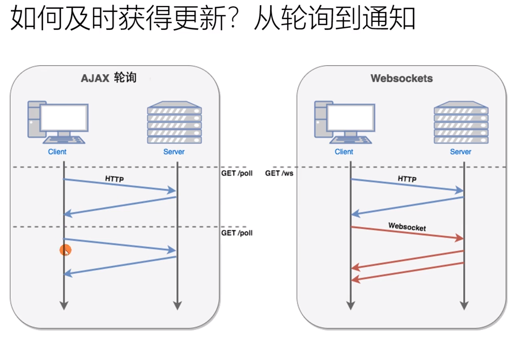 轮询:1.消耗资源; 2. 更新不及时