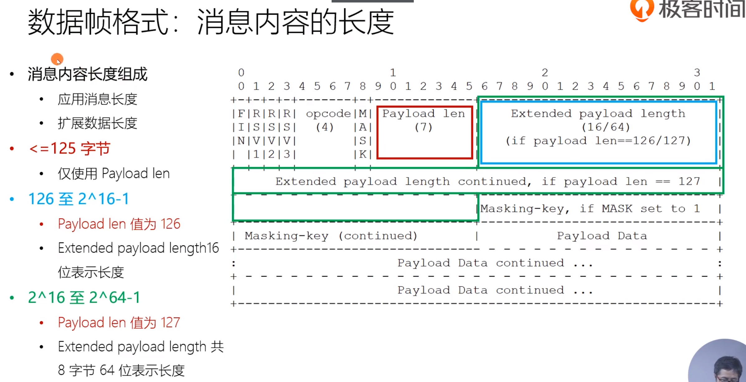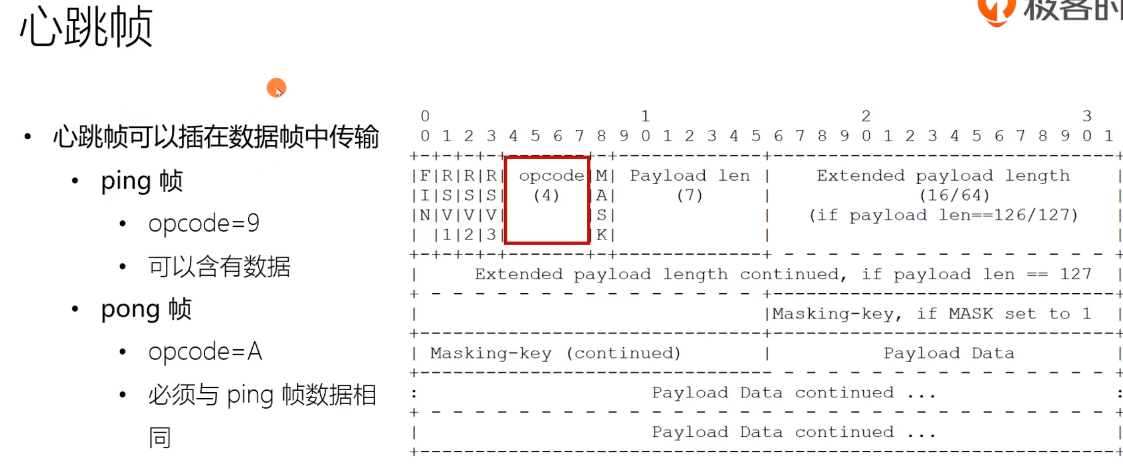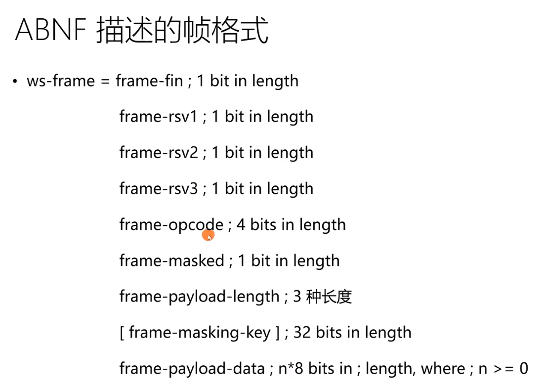 下方绿色为中途插入的控制帧, 左边三个蓝色的为消息帧,FIN = 0说明消息没有结束 op=1/2为文本帧/二进制帧,三个蓝色的帧拼接为一个消息
