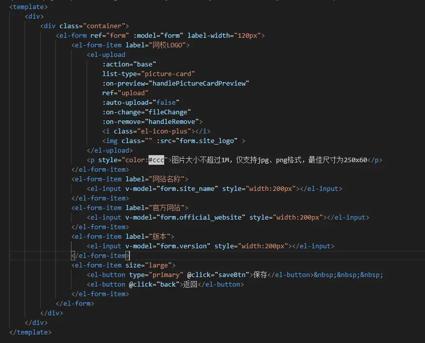 图片/文件其他参数共同上传 吃西瓜的田鼠 2020-05-23 159 阅读1分钟 本次介绍结合的是element上传组件 一、视图层 注意:将element上传组件引进来之后,首先要添加两个关键属性 (1):auto-upload="false";管理组件立即上传的功能 (2):on-change="fileChange" 二、表单数据层 三、方法methods层 四、接口的方法的注意事项,请求头headers为'Content-Type': 'multipart/form-data';