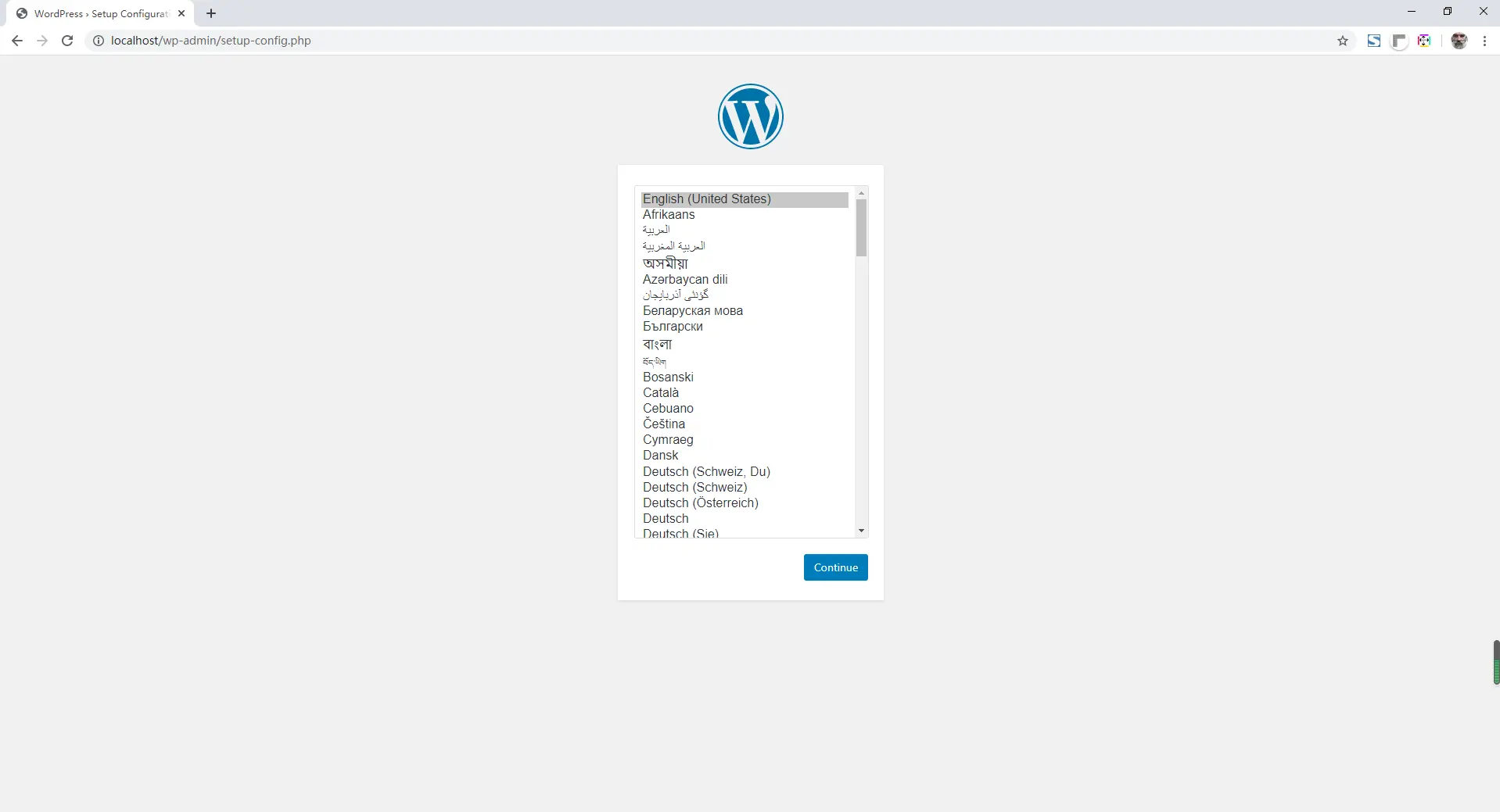 解压完成后,重新启动Apache Http Server。接着打开浏览器并访问:http://localhost/wp-admin/setup-config.php,进入Wordpress安装页面。