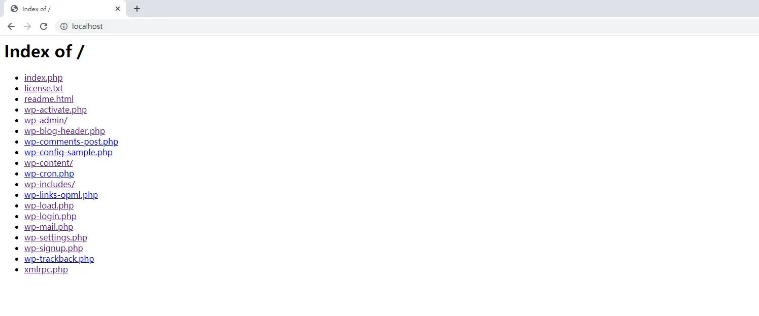 如果在安装Wordpress的过程中,出现类似**Index of /**的文件列表页面,如下图: