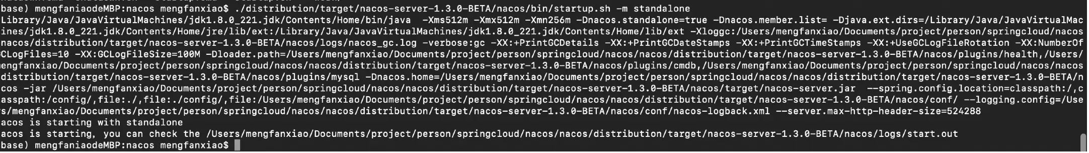 ./distribution/target/nacos-server-1.3.0-BETA/nacos/bin/startup.sh -m standalone