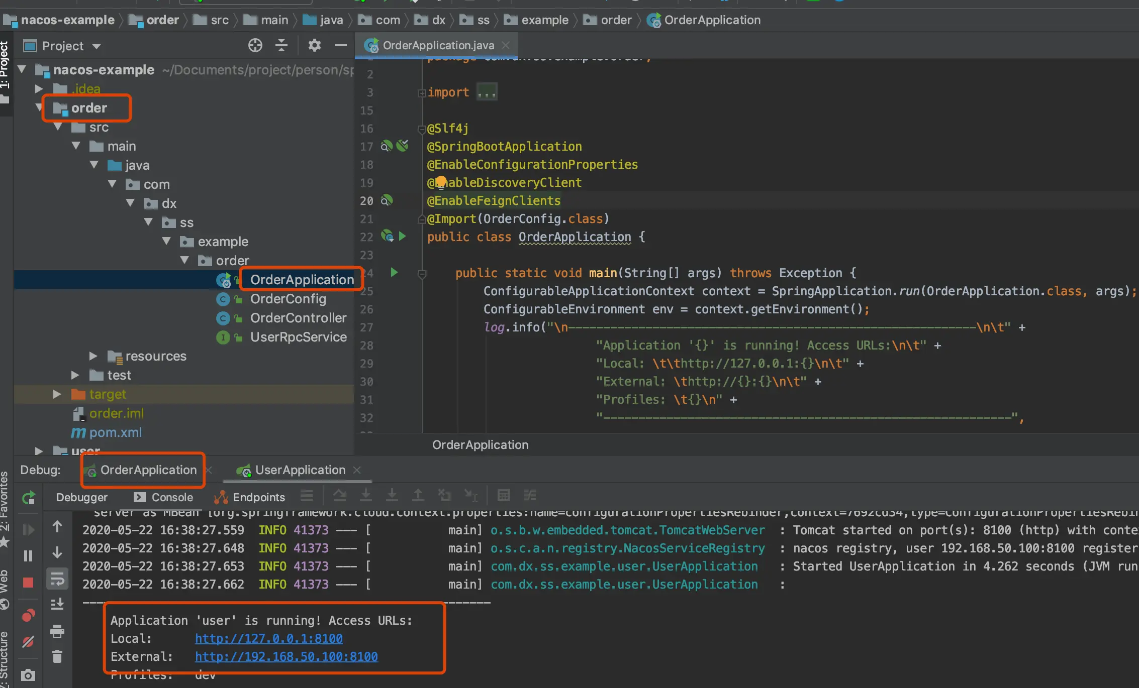 下载user、order代码资源