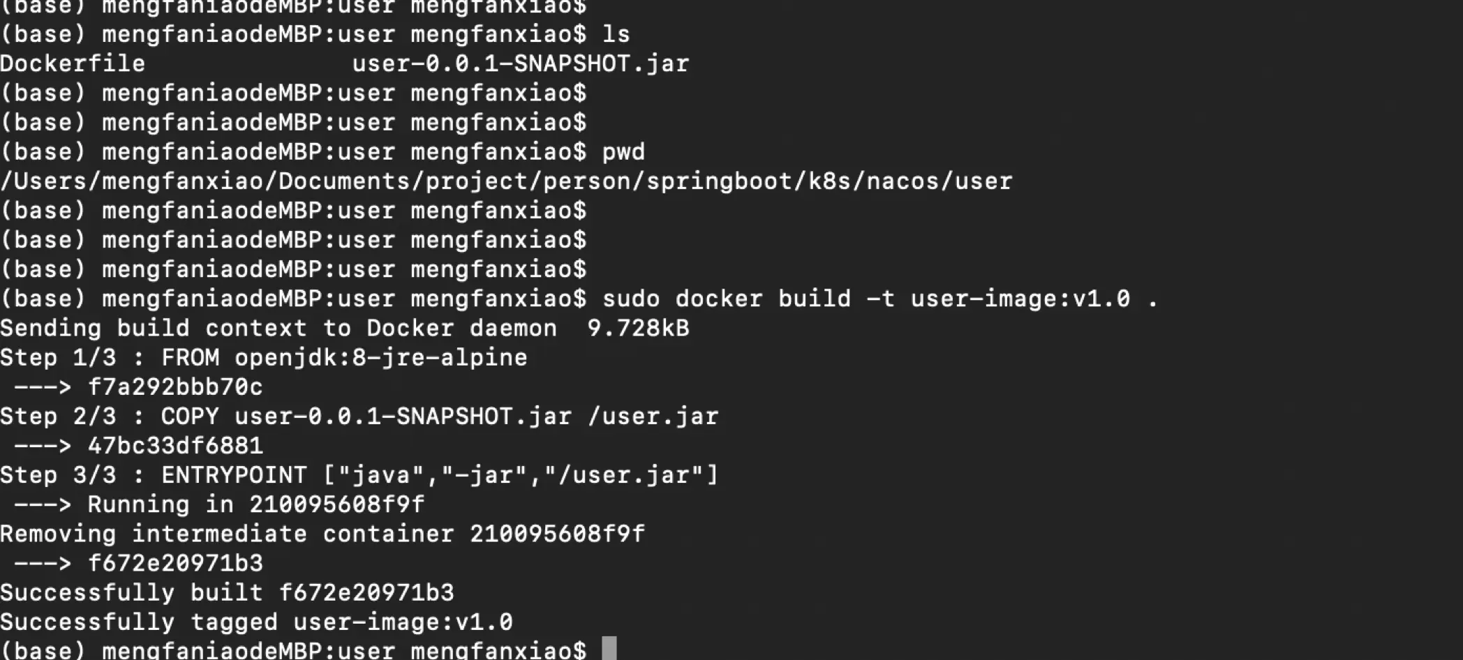 sudo docker build -t user-image:v1.0 .