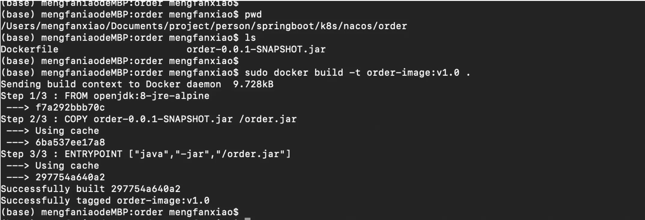 sudo docker build -t order-image:v1.0 .