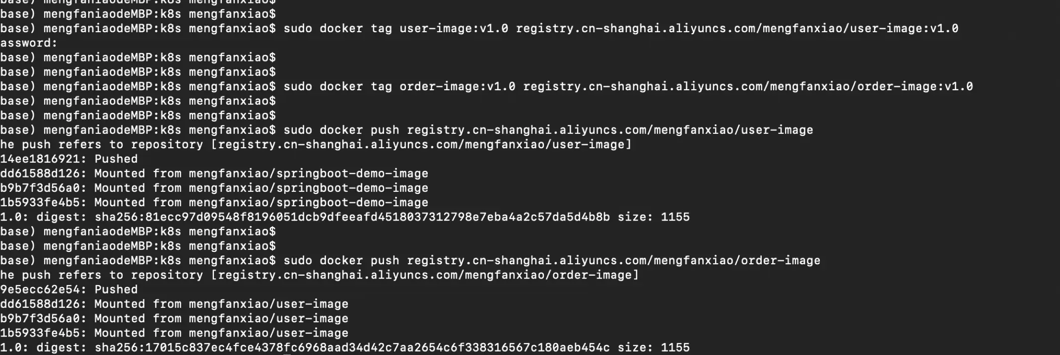 sudo docker push registry.cn-shanghai.aliyuncs.com/mengfanxiao/user-imagesudo docker push registry.cn-shanghai.aliyuncs.com/mengfanxiao/order-image