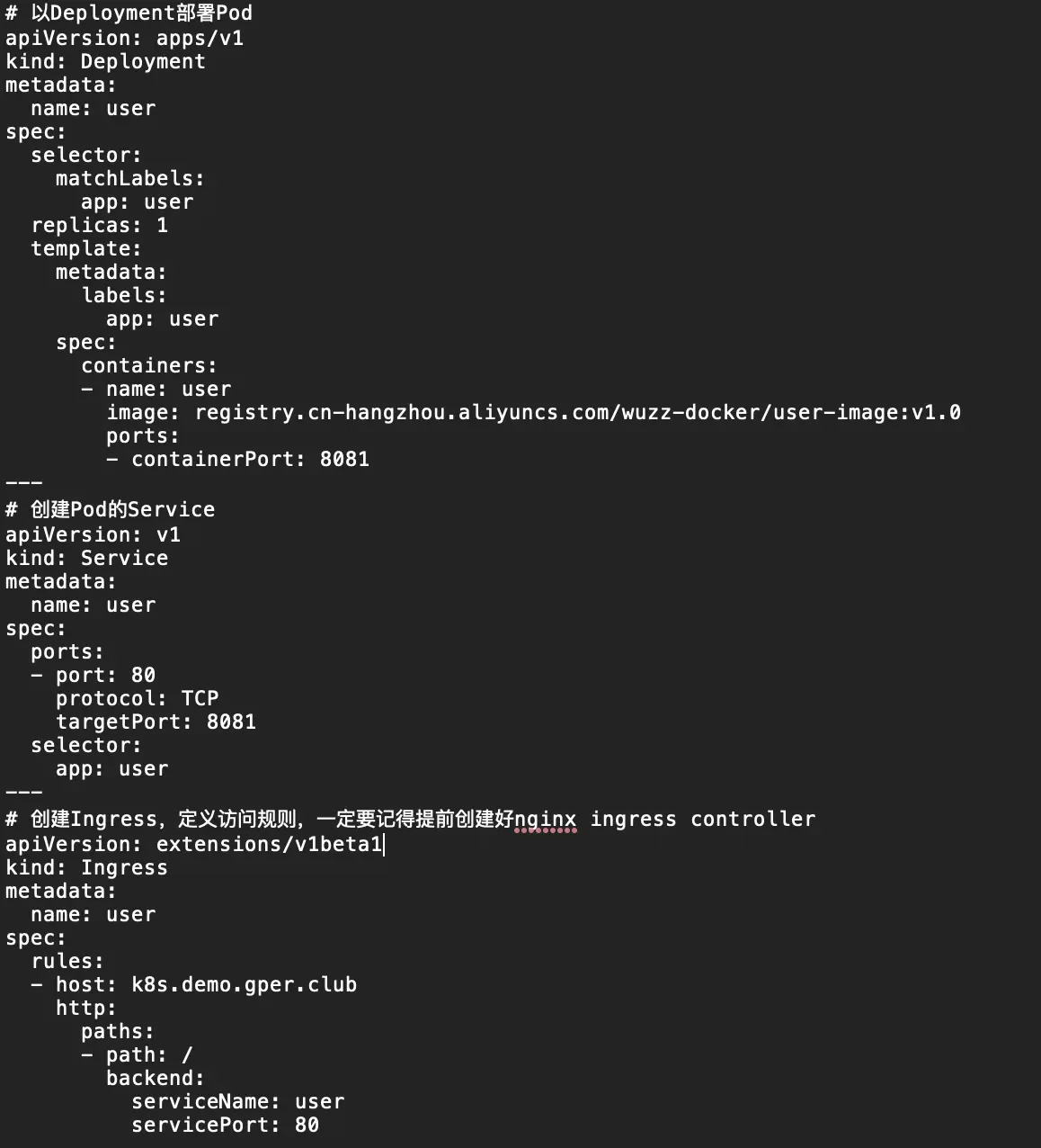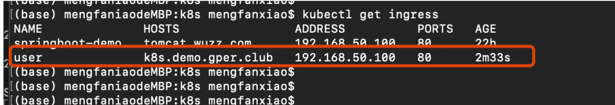 - 通过ingress nginx方式访问user