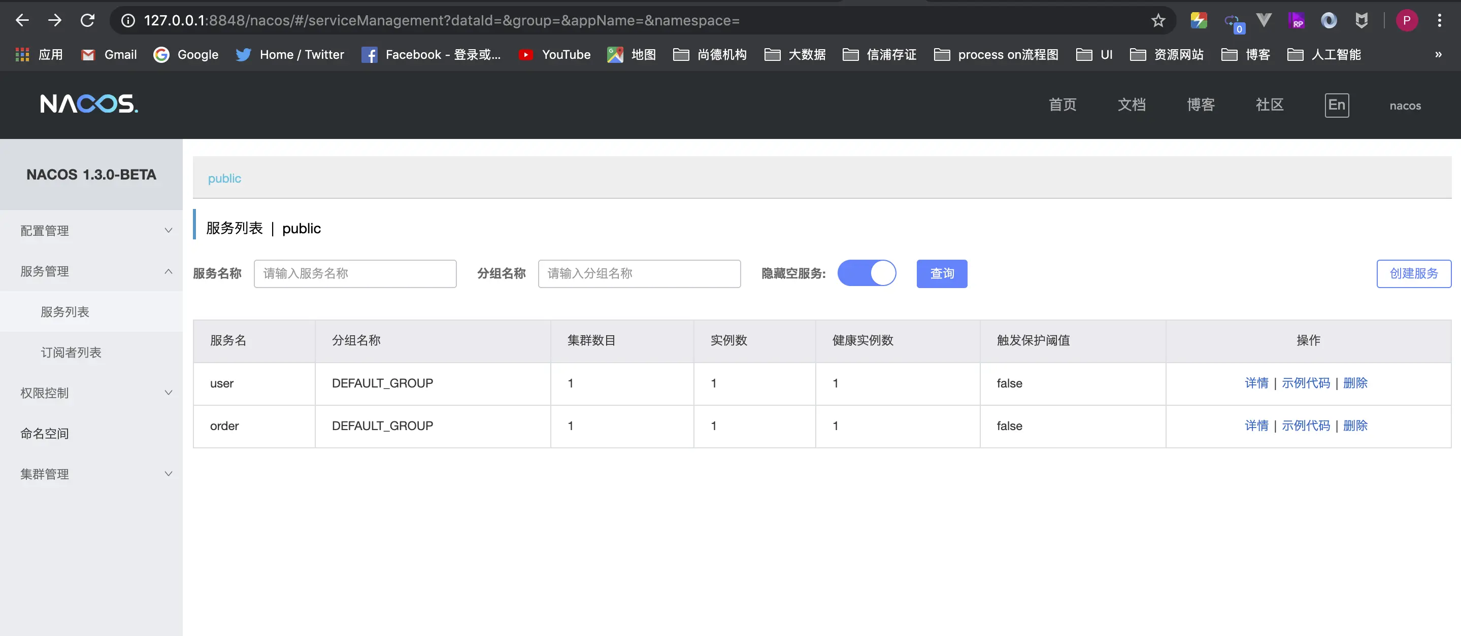 - 查看user 和 order服务 是否成功注册到 nacos