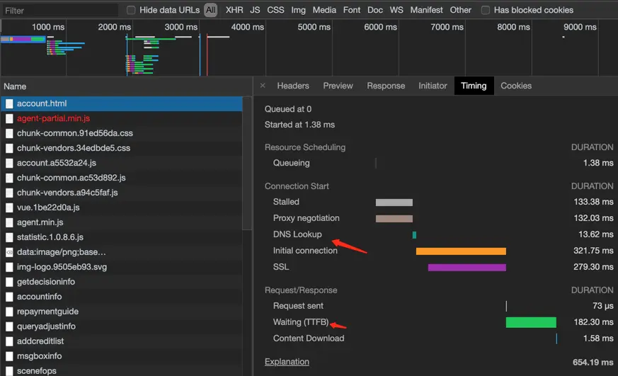 TTFB(Time To First Byte):发起请求到服务器返回数据的时间 详情可以看这里