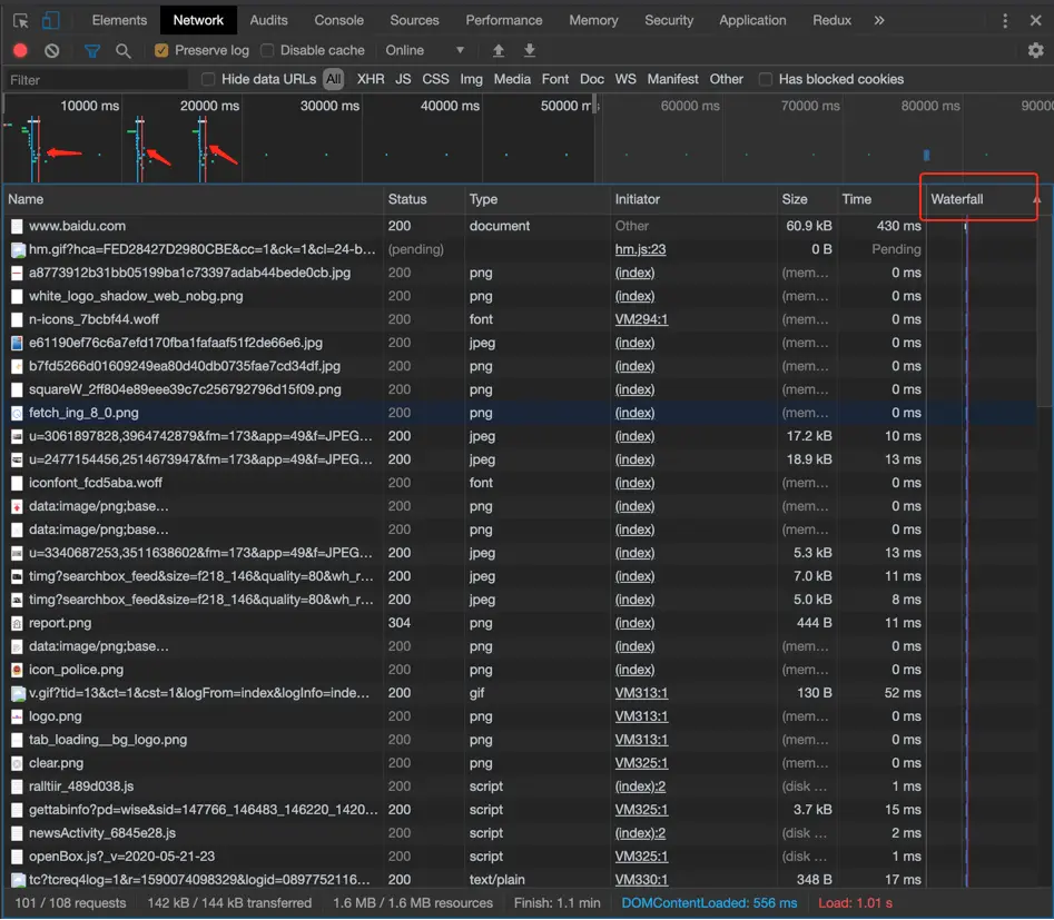 - waterfall瀑布是加载顺序和耗时;