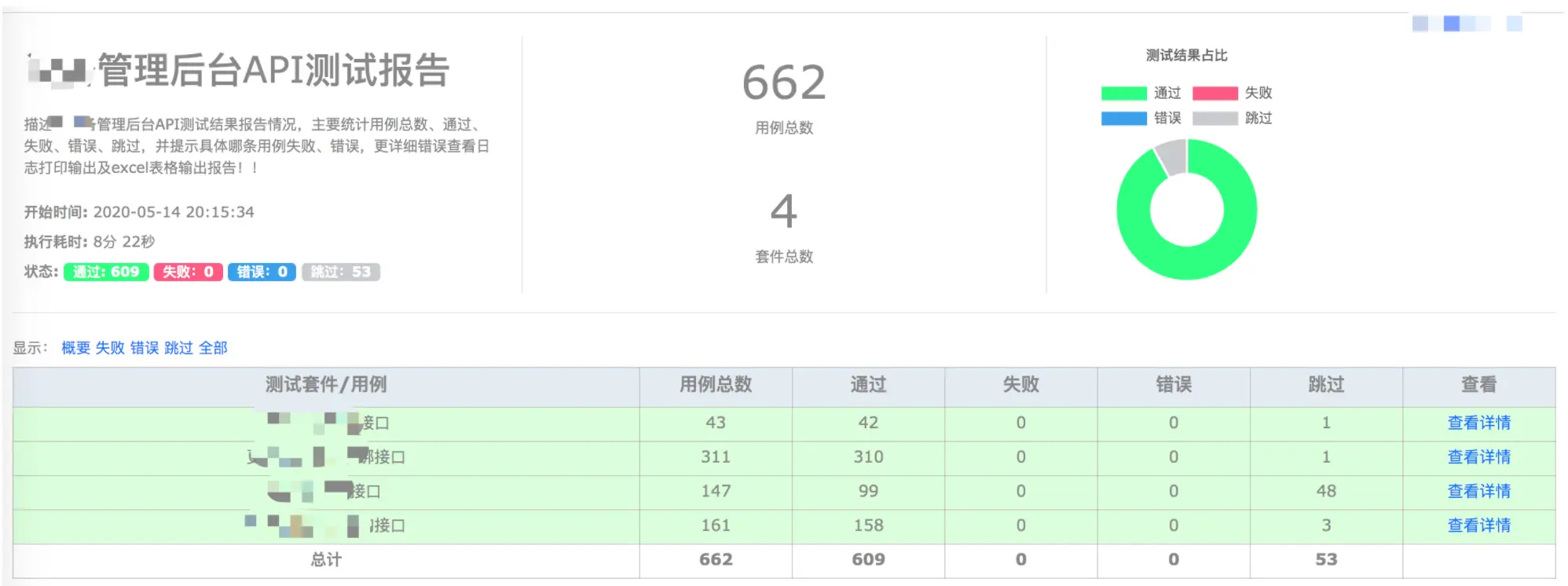 9.支持测试完成后自动生成两种测试报告:详细的excel表报告和统计数据:HTML测试报告展示