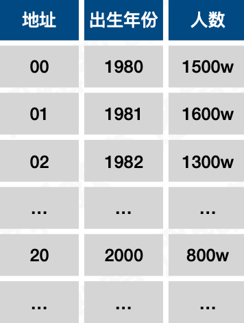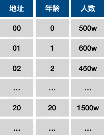假如查找3岁的人口,根据F(3) = 3,直接找到为450W。