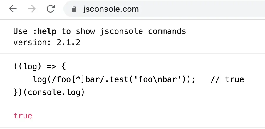log(re.test('foo\nbar')); // true