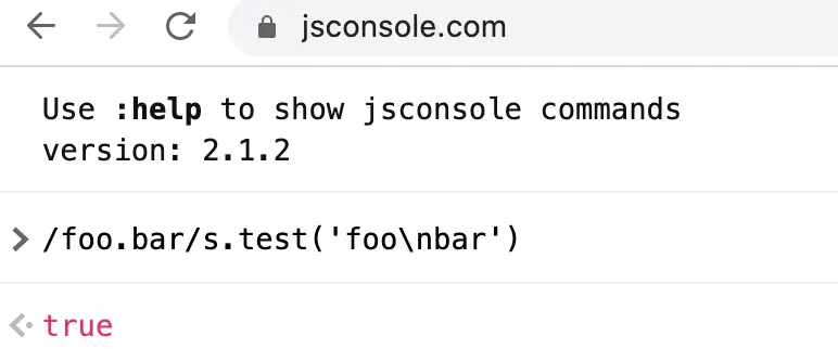 log(/foo.bar/.test('foo\nbar')); // false