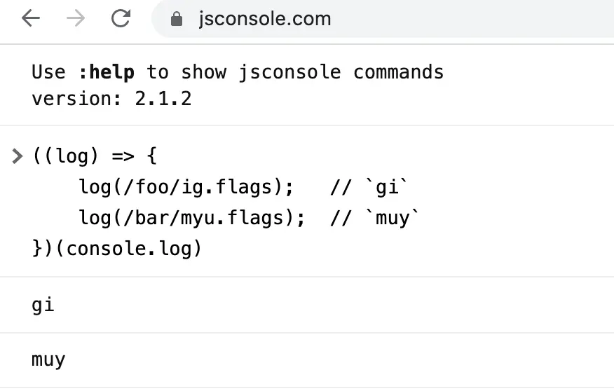 log(/foo/ig.flags); // `gi`