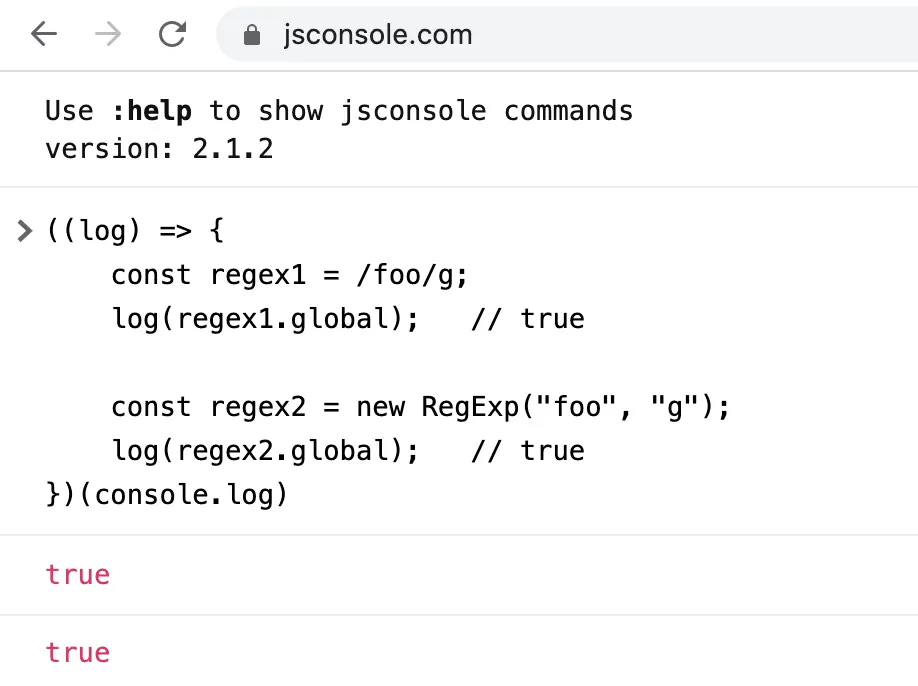 log(regex2.global); // true