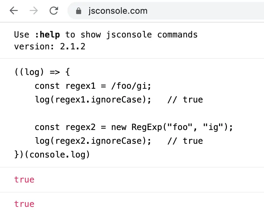 log(regex2.ignoreCase); // true