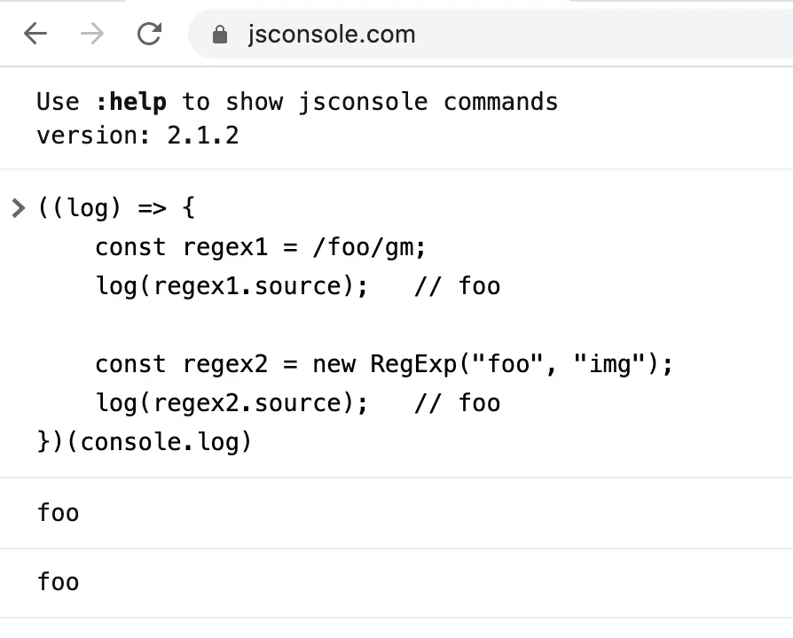 log(regex1.source); // foo